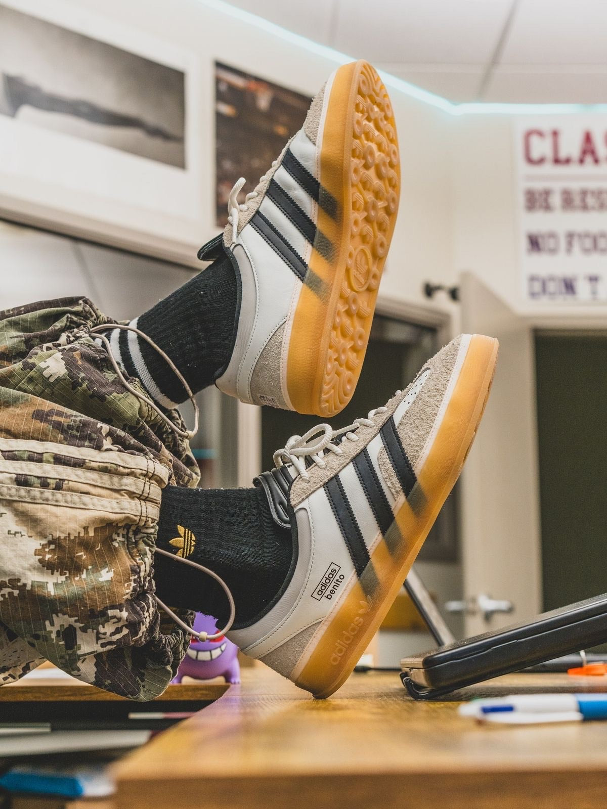 Sneakers et vêtements soigneusement choisis